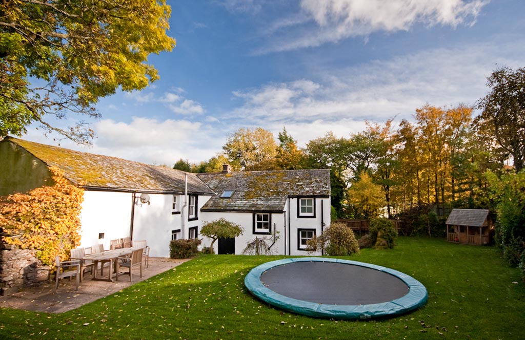 The cottage has its own stone terrace with garden furniture. The garden contains a sunken trampoline.