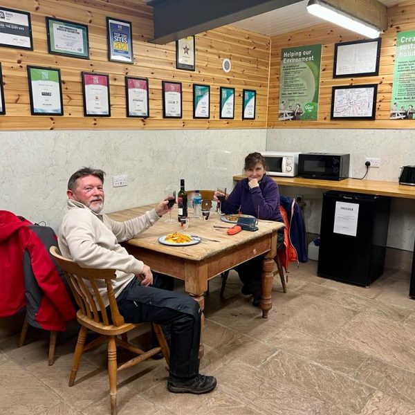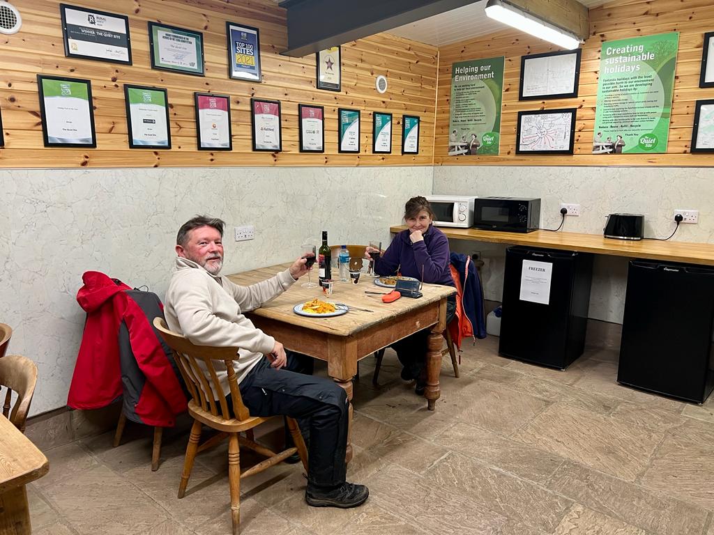 With it’s tables and chairs, it’s a warm, dry space to cook and eat in, or just chat to your fellow campers.