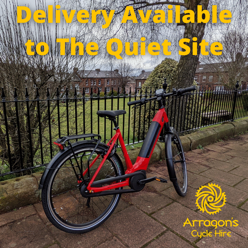 Prices include helmet, lock, pump and repair kit. Cycles can be delivered and picked up for £30 to The Quiet Site for your convience with 24 hours notice.