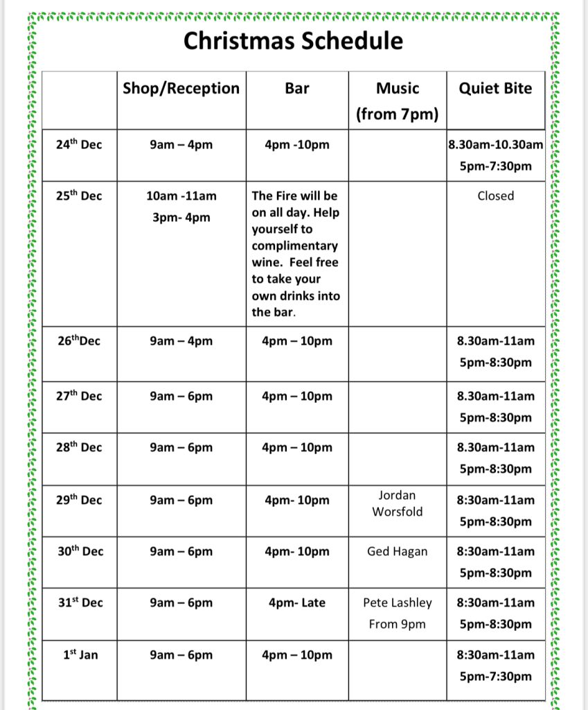 This year we are offering different 3 festive breaks: Christmas 24/25/26 Twixmax. 27/28/29 New Year 30/31/1 *full for pitches The…
